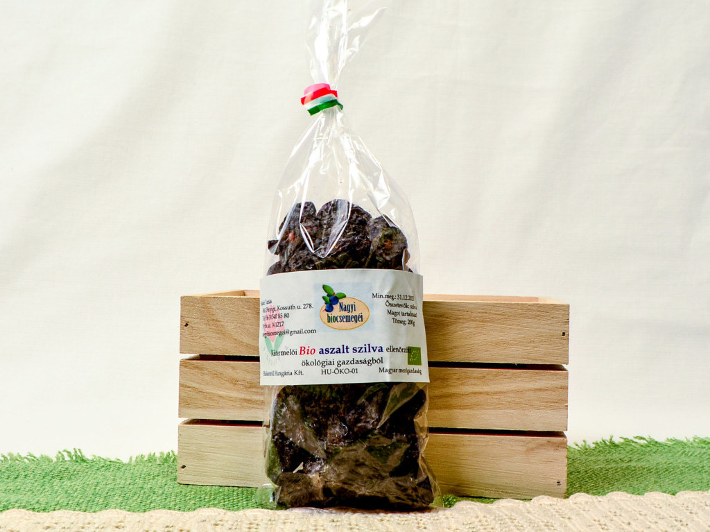 Saját termelésű, felezett és magozott szilvából készült aszalvány. Tartósítást az aszalás biztosítja. 1 csomag (db) 120g felezett, szilva terméket tartalmaz, melyet papírzacskóba csomagolva szállítunk.
