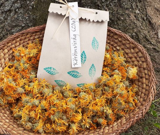 A körömvirág remek gyulladásgátló, fertőtlenítő és gombaölő, ezért jól alkalmazható öblítőszerként a torokfertőzés illetve száj penész kezelésére. Sebgyógyító, vérzéscsillapító hatásánál fogva jól orvosolhatók vele egyes felületi sebek, pl. lábszárfekélyek, horzsolások. Belsőleg is használatos, elsősorban a nyirokcsomók gyulladása, szájüregi fekély vagy a gyomor nyálkahártyájának károsodása esetén. Vegyszermentes kiskertemből, kézzel szedtem, a nap energiája szárította.