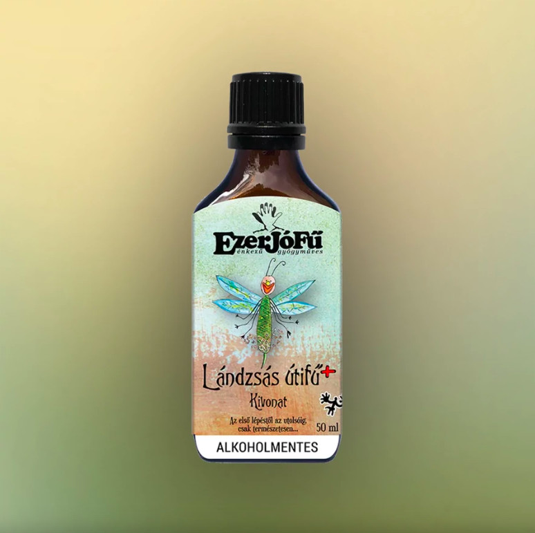 Gyógynövények: Lándzsás útifű, Bodza, Édeskömény, Ánizs, Vadkakukkfű, Echinacea, Édesgyökér A lándzsás útifű: baktériumölő, nyálkaoldó hatása miatt elsősorban légzőszervi betegségekre, köhögésre, asztmára alkalmazzuk. Kiváló köhögéscsillapító. Bodza: köhögés-, valamint lázcsillapító és izzasztó, kimondott náthaszer. Édeskömény : légzőszervi megbetegedésekben, az immunrendszer védelmében antioxidáns, antibakteriális, görcsoldó és gyulladásgátló hatásokat fejt ki. Ánizs: b ővelkedik B-vitaminokban, a piridoxin (B6-vitamin) erősíti az immunrendszert . Echinacea : természetes antimikrobás hatású és fertőzésgátló, véd a baktériumok, vírusok, gombák és egyéb kórokozó mikrobák ellen. A gyógynövény hatásaként a sejtek egy természetes vírus ellenes anyagot, az interferont fokozottabban termelik. Vadkakukkfű .immunerősítő, köhögéscsillapító, kiváló fertőtlenítő hatású. Torok- és mandulagyulladásnál, megfázásnál, köptető hatású. Édesgyökér: hatékonyan enyhíti a torokgyulladást, a köhögés, megfázás és asztmatikus panaszok ellenszere. Kiszerelés: 50 ml Alkalmazás: 3×10-20 csepp naponta étkezések előtt fél órával. Táplálkozásunkban sokrétűen felhasználható. Használat előtt felrázandó! Tárolás: száraz, hűvös, sötét helyen, felbontás után hűtőben tárolandó. A Lándzsás útifű+ kivonat az Ezerjófű énkezű gyógyműves alkoholmentes terméke. Gyártja: EzerjóFű Gyógynövény Kft Zalaegerszeg