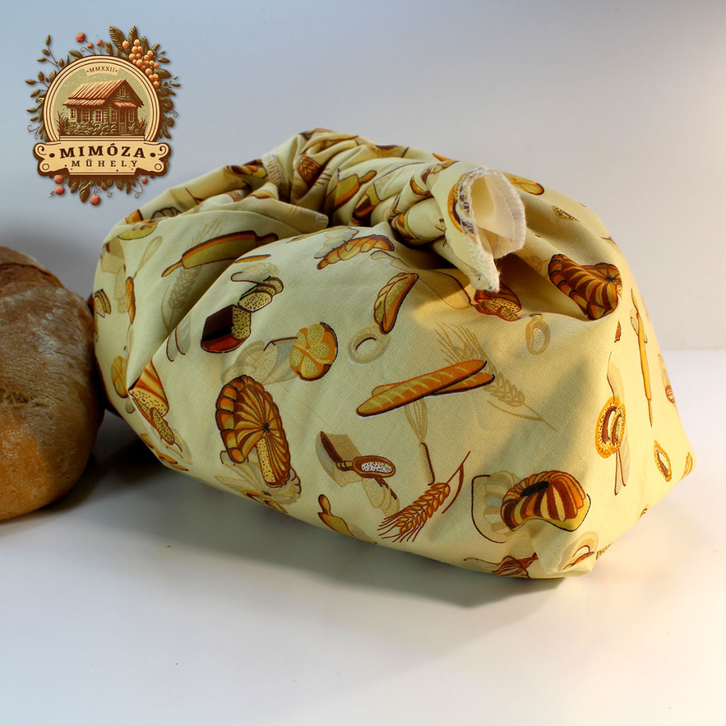 Kenyeres zsák sárga színben, péksütis mintával – friss kenyér, hagyományos módon tárolva Emlékszel, amikor a nagymamád vászonzsákban hozta haza a friss kenyeret? Ezzel a sárga, péksütis mintás kenyeres zsákkal te is visszahozhatod ezt a meghitt hangulatot – modern, környezettudatos megoldással. – Tágas méret: egy egész 1 kg-os kenyér kényelmesen elfér benne. – Belső PUL réteg: segít, hogy a kenyér tovább friss maradjon, ne száradjon ki és ne penészedjen meg. – Egyszerű használat: csak húzd össze a zsinórt, és máris kész a biztonságos tárolás. – Környezetbarát alternatíva: nincs több nejlonzacskó, csak természetes pamut és praktikus PUL bélés. – Ajándéknak is tökéletes – hiszen mindenki örül egy praktikus, kézműves, szeretettel készült darabnak. Ez a kenyeres zsák nemcsak egy tároló, hanem mindennapi kényelem és egy darabka nosztalgia is, amitől a friss kenyér illata sokáig veled marad. Tartsd frissen a kenyered egy egyszerű és működő megoldással – válaszd a Mimóza Műhely kenyeres zsákját! A termék színe a valóságban kismértékben eltérő lehet a képen láthatóhoz.