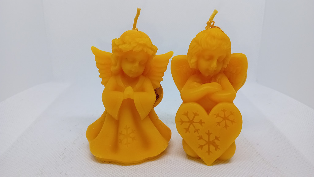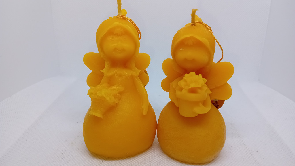 Méhviaszból készült, 2db-ból álló manósapkás angyalok.