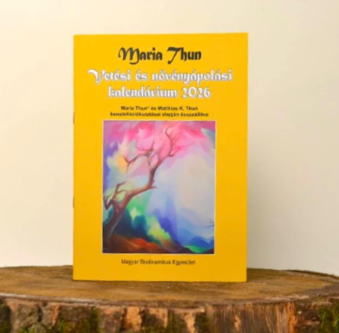 VETÉSI ÉS NÖVÉNYÁPLÁSI KALLENDÁRIUM 2026 A vetési naptár hatvannegyedik kiadását a virágok birodalmának szenteljük. Néhány írásban kitérünk a virágos növények gondozására, valamint a virágos sövények témájával is foglalkozunk. Walther Thun képeit, részletesebben is bemutatjuk. A minden évben szokásos részletességgel ajánlások következnek a hobbikertészeknek , kertészeknek, mezőgazdászoknak, és szőlőművelőknek, továbbá bemutatjuk a méhek gondozására legmegfelelőbb időszakot. Maria Thun Vetési naptár 1984 óta jeleik meg magyar nyelven a Magyar Biodinamikus Egyesület gondozásában. A magyar nyelvű kiadás létrejöttét de. Mezei Ottóné elhivatottságának és munkájának köszönhető. 2014-ig Ő fordította német nyelvből a Vetési naptárt. A vetési naptár szerkesztését és a konstellációk kutatás folytatását Matthias K. Thun halála óta immár teljesen az unokák, Titia Thun és Friedrich K.W.Thun vállalta fel ugyanolyan elhivatottsággal, ahogyan azt a szüleik és nagyanyjuk, Mária Thun tették. Bár a Vetési naptár eredetileg a biodinamikus gazdálkodók segítségére készült, olyan gazdáknak és kertészeknek akik a Rudolf Steiner által ajánlott gyógynövény preparátumokat is használják a termesztésben, mégis mindenki használhatja, aki a konstellációk érvényesülésének feltételeit gazdaságában megteremeti. A konstellációk érvényesülésének tehát feltételei vannak, a hatás a talajon keresztül jut el a növényhez, egyszer gyökér, másszor a virág, a levél vagy termés fokozott fejlődésének kedvezve. A talaj érzékenységét sem műtrágyák, sem vegyszerek, sem éretlen istállótrágya nem szabad, hogy zavarják. Az érzékenységet a komposztált, preparátumokkal ellátott szerves anyag fokozza. Az ilyen módon kezelt, kíméletesen művelt talaj átállási ideje 5-7 év. Azután várható a termés kívánatos minőségi , sok esetben mennyiségi változása. Előfordulhat azonban, hogy sok esetben a minőségi javulás ( aroma, eltarthatóság ) már az átállási időben is feltűnő lesz. A vetési naptár használatához jó munkát és egészséget kíván a Magyar Biodinamikus Egyesület.
