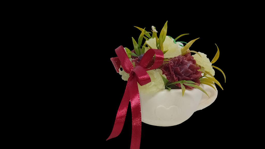 Gyertya virágbox, csésze alakú tartóban. A tartó Jesmonite ásványporból készült. A Jesmonite ásványi por,egy oldószermentes,akril polimer alapu rendszer része, mely vzbázisú akril folyadékkal keverve , szilárd, UV-álló környezetbarát,és kiváló fizikai tulajdonságokkal rendelkező anyagot eredményez. Tartós, könnyű és nem mérgező,ideális öntési és laminálási munkákhoz, beltéri és kültéri használatra egyaránt. A virágcsokor készítéséhez felhasznált anyagok: sárga és bordó szinű viaszból készült virágok és levelek,tűzőhab,és mesterséges zöld levelek. Szeretettel ajánlom,ajándéknak,vagy saját magunknak. Köszönöm