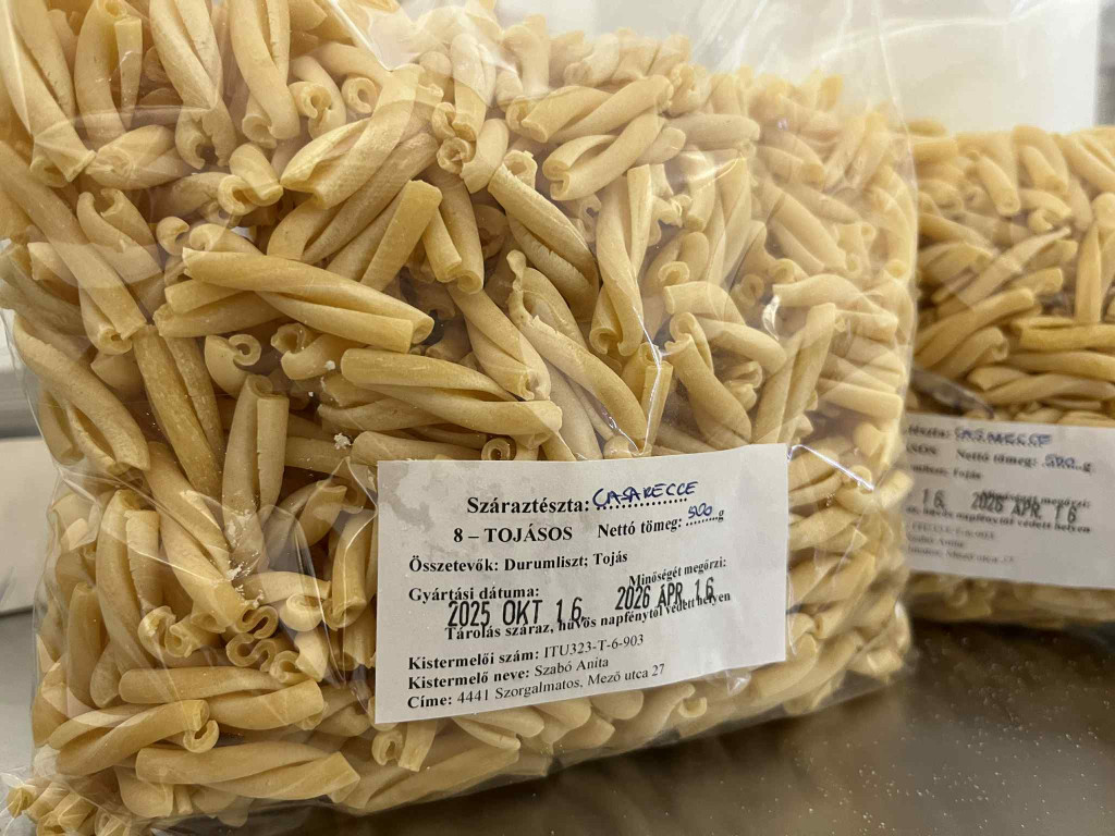 SSSSSSSSSSSSSSSSSSS...... Sok S, Semmi máS. A casarecce egy jellegzetes, közepes méretű, sodort formájú olasz tésztaféle, amely Szicíliából származik. Neve nagyjából annyit jelent: „házi készítésű”, utalva a hagyományos, kézzel formázott alakjára. Főbb jellemzői: Formája: enyhén csavart, S-alakú vagy megnyitott csőszerű tészta, amelynek a szélei kissé befelé hajlanak. Ez a kialakítás segít abban, hogy a szósz jól megtapadjon rajta. Állaga: főzés után rugalmas, harapható, ideális az al dente állapothoz. Felhasználás: sokoldalú tészta, kiválóan működik sűrűbb szószokkal, például pestóval, húsos ragukkal vagy zöldséges mártásokkal. A formája miatt a darabosabb feltéteket is jól „megfogja”. Eredete és hangulata: rusztikus, házias érzetet kelt, így gyakran mediterrán, vidéki ihletésű ételekben jelenik meg. A casarecce a változatos textúrák kedvelőinek különösen jó választás, egyszerre elegáns és játékos, minden falatnál gazdagon hordozva a szósz aromáit. Műhelyünkben készült, házi tyúktojással készített 8 tojásos körettészta.