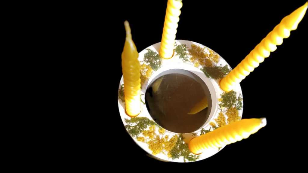 Adventi koszorú2.A gyertyák méhviaszból készültek. A tartó Jesmonite ásványi porból és Epoxi átlátszó gyantából , száraz virágok hozzáadásával