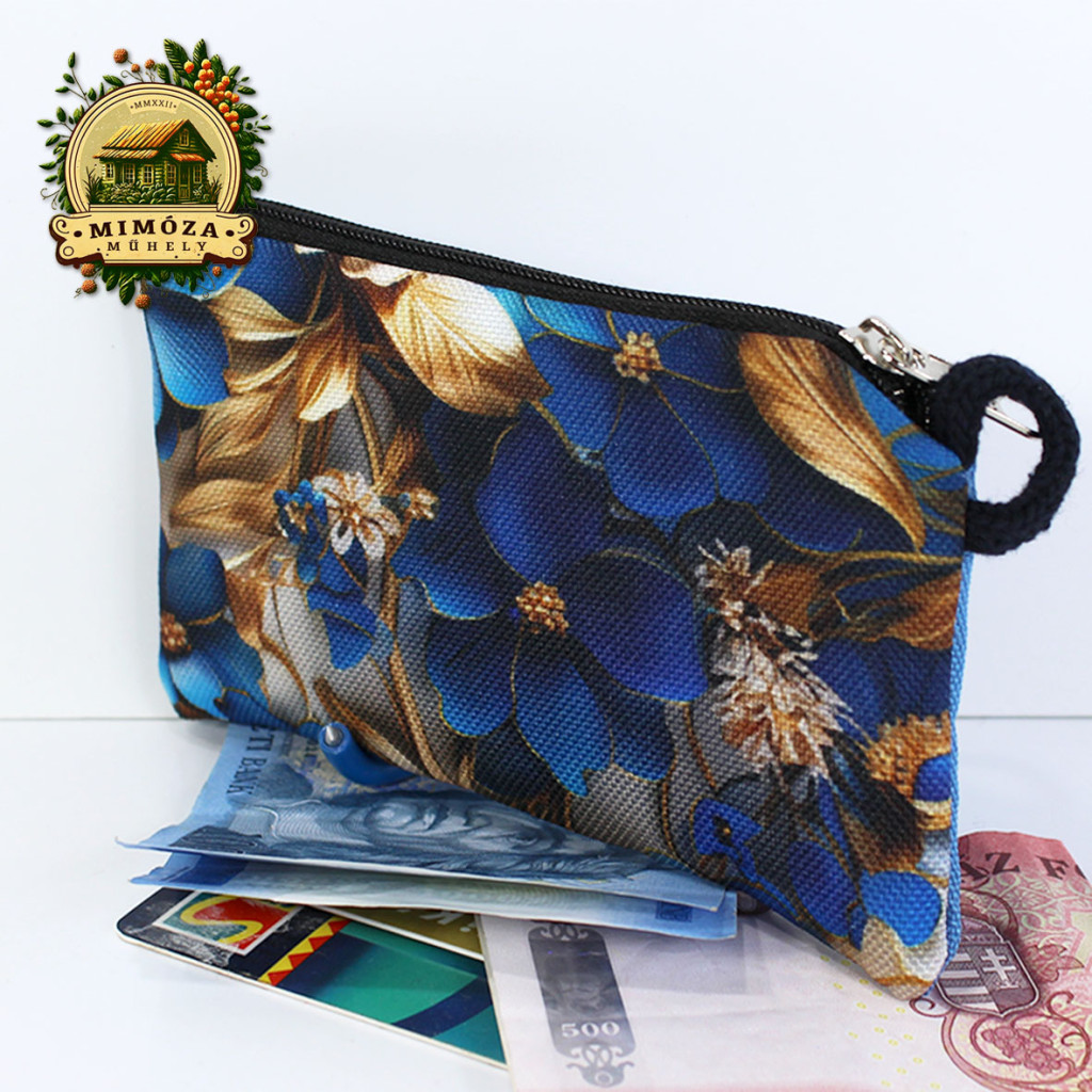 Kezdőlap Termékek KÉZMŰVES TERMÉKEK Bankkártya tartó farmerkék színben, virágos mintával