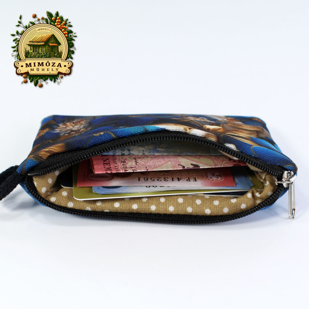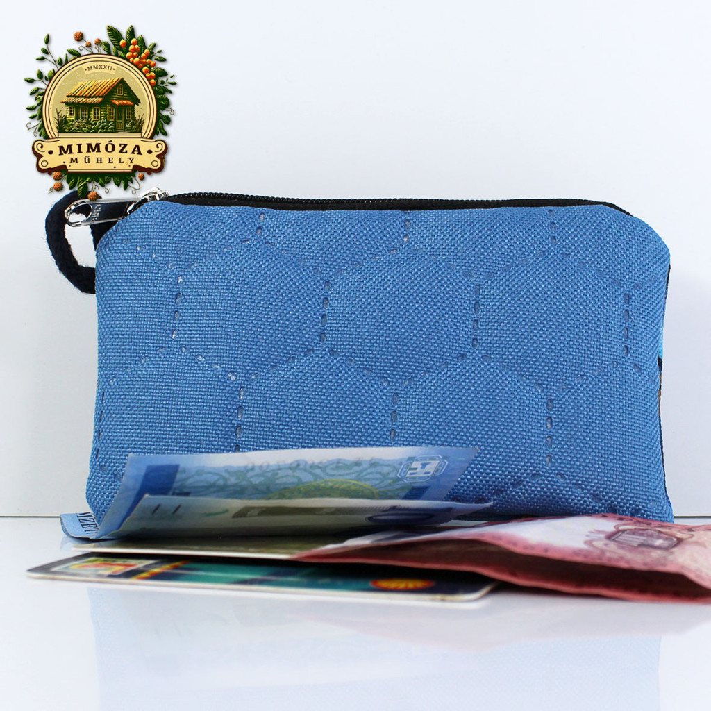 Kívül strapabíró gyöngyvászon, belül puha pamutvászon, középen vatelin gondoskodik róla, hogy a kártyáid védve legyenek.
