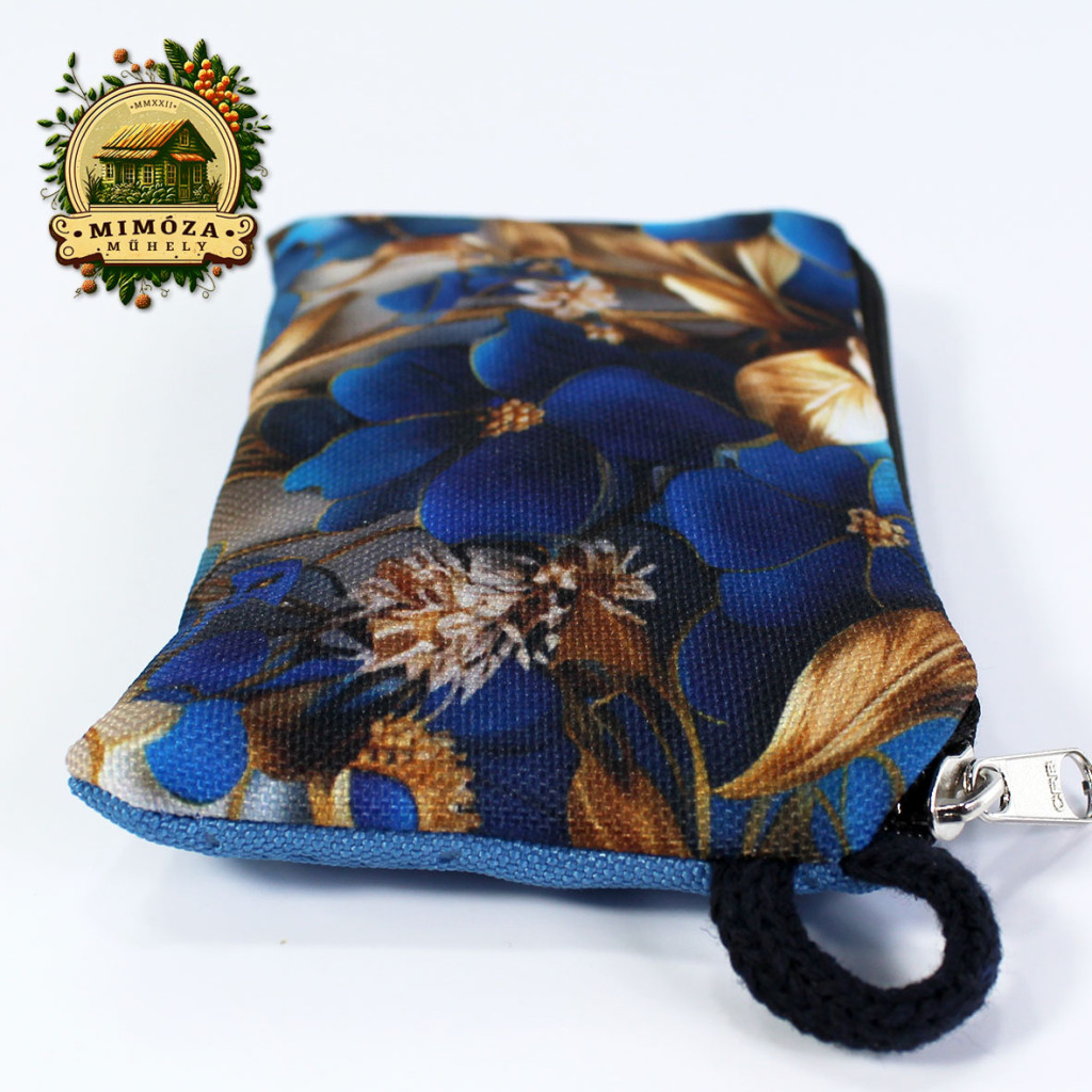 Bankkártya tartó farmerkék színben, virágos mintával