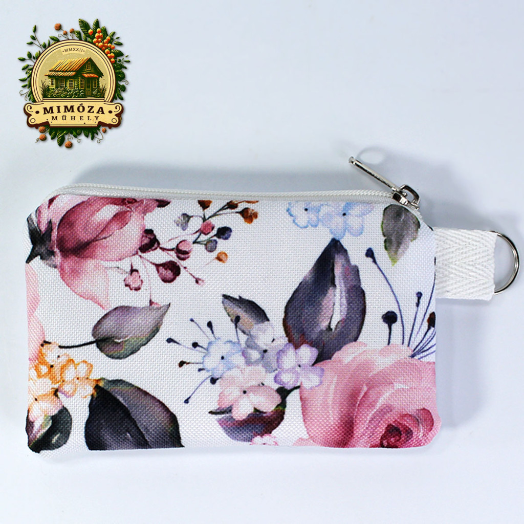 Kezdőlap Termékek KÉZMŰVES TERMÉKEK Bankkártya tartó fehér színben, rózsaszín rózsás mintával