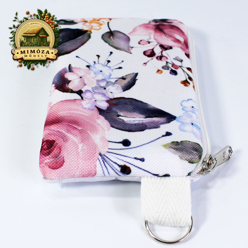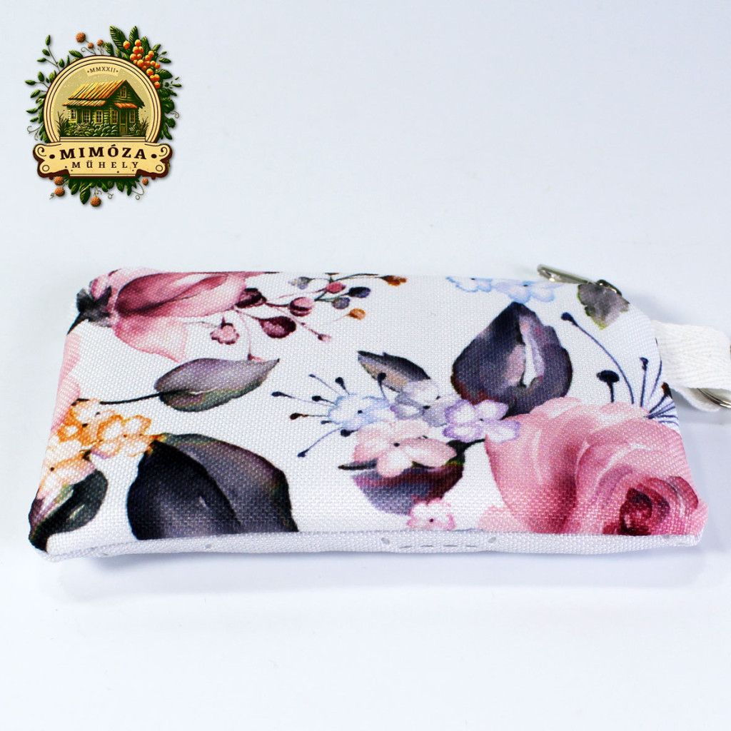 Bankkártya tartó fehér színben, rózsaszín rózsás mintával