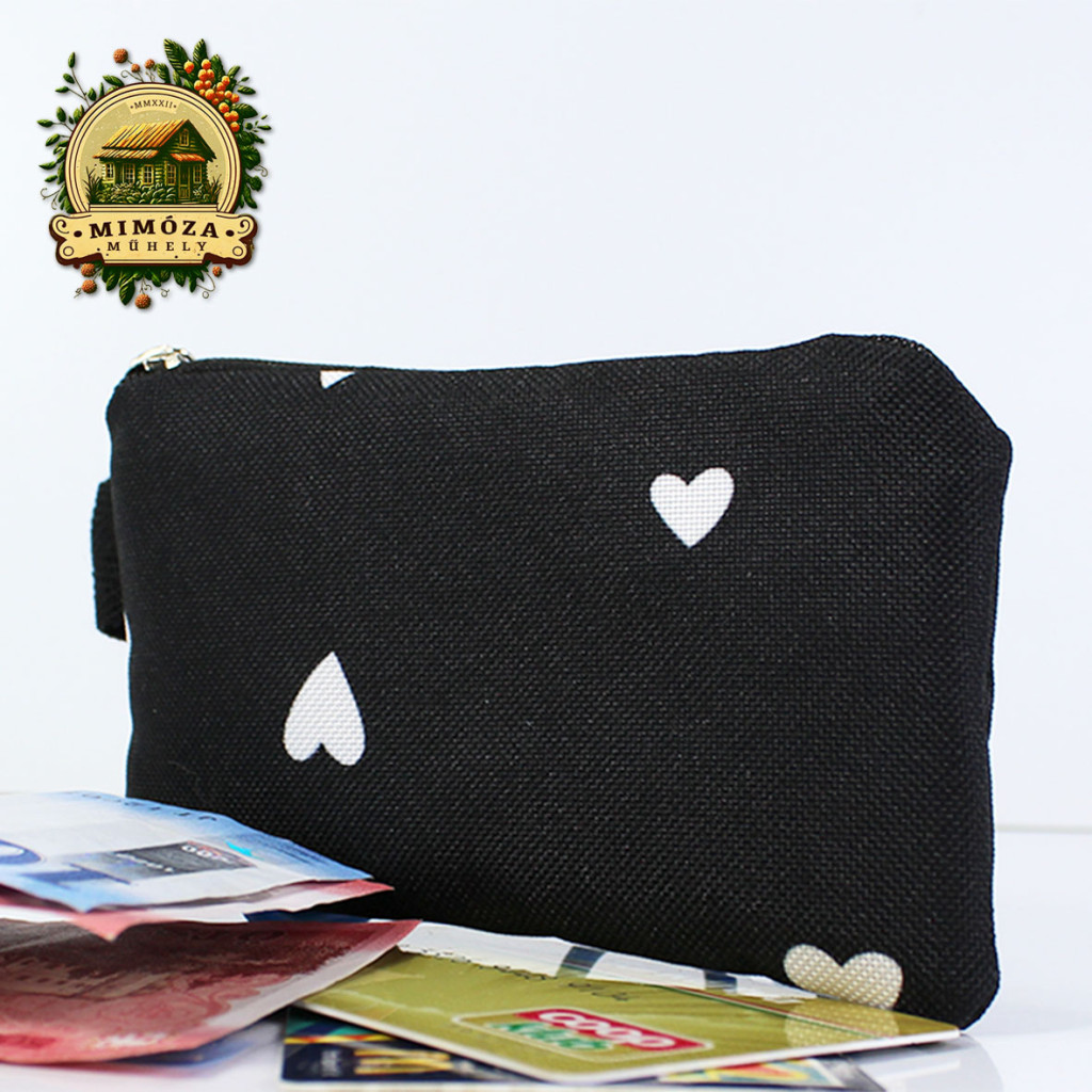 Kezdőlap Termékek KÉZMŰVES TERMÉKEK Bankkártya tartó fekete színben, szivecskés mintával