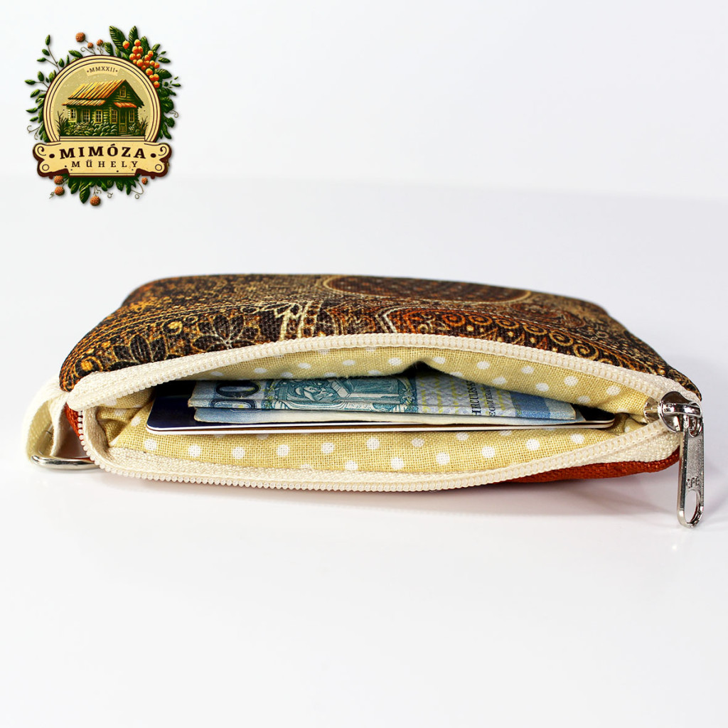 Elfér benne 4–5 plasztikkártya és néhány bankjegy, a zippzáras záródás pedig biztonságosan védi a tartalmát.