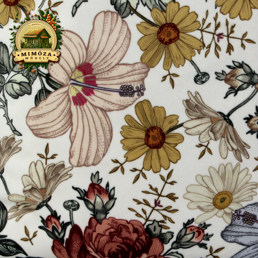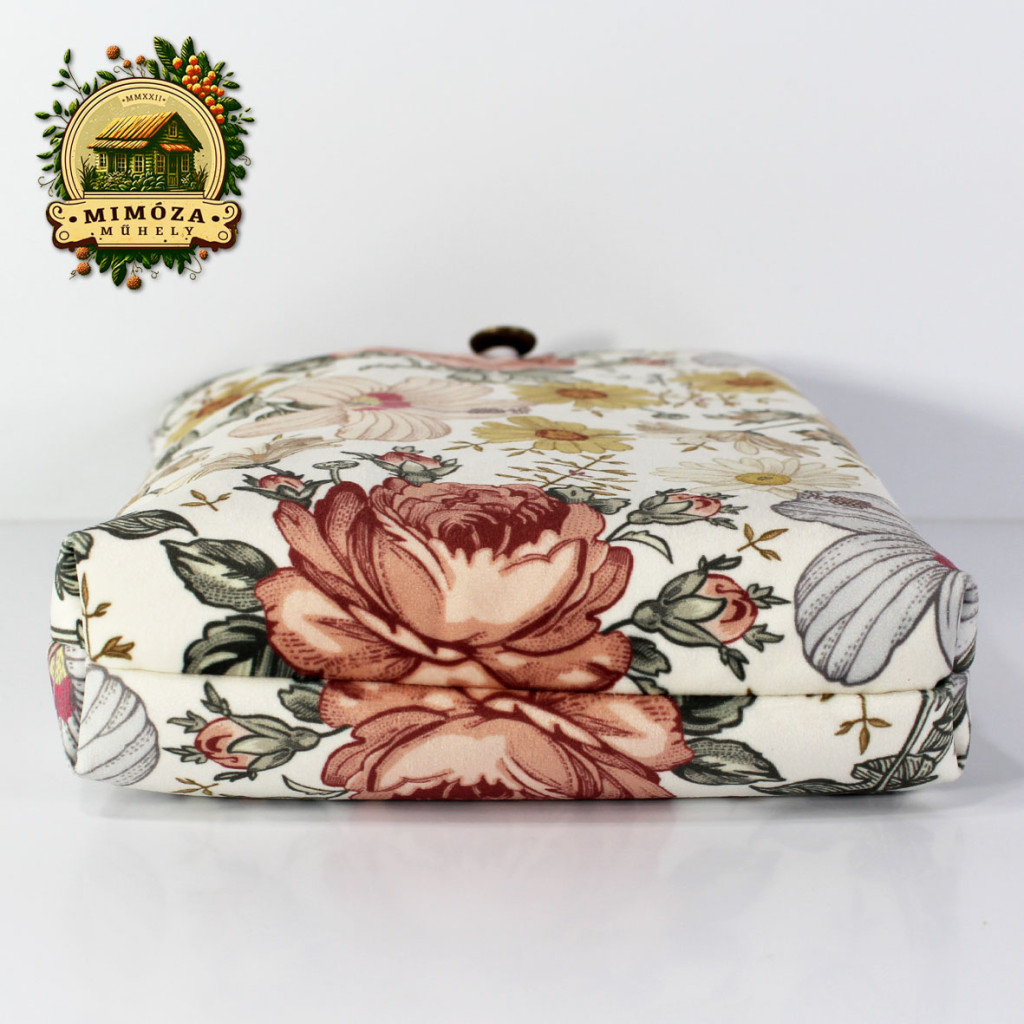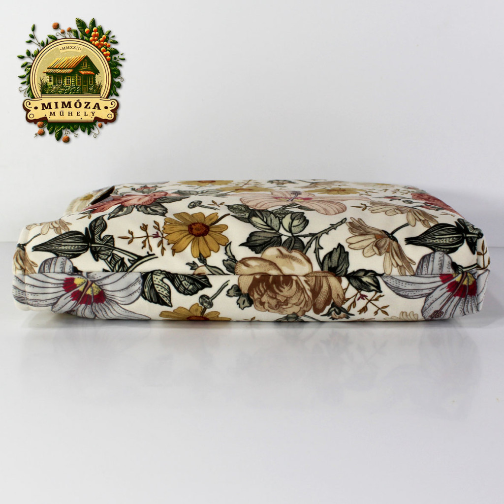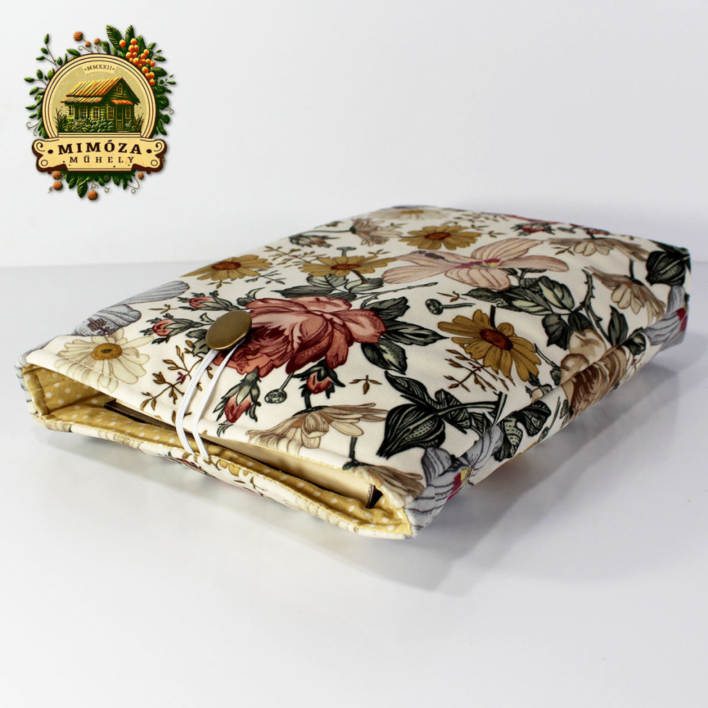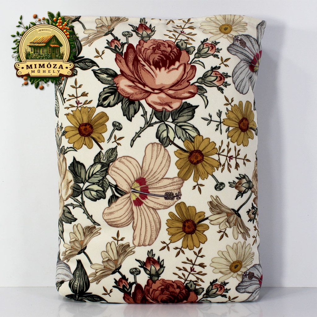 Bársony könyv- és tablettartó törtfehér színben, virágos mintával