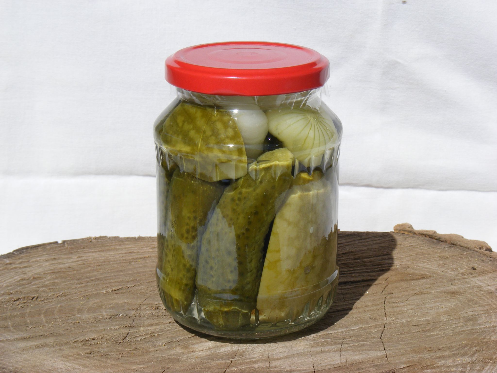 Főleg uborka - hozzá dinnye és gyöngyhagyma került - egy kisebb üvegben azoknak, akik nem akarnak egy adagban több étkezéshez való savanyúságot. Saját termelésű uborkát, dinnyét, gyöngyhagymát tettem az üvegbe, felöntőlevet készítettem hozzá cukor, só, ecet, borkén, na-benzoát felhasználásával és két hónapig pihent a kamrában.