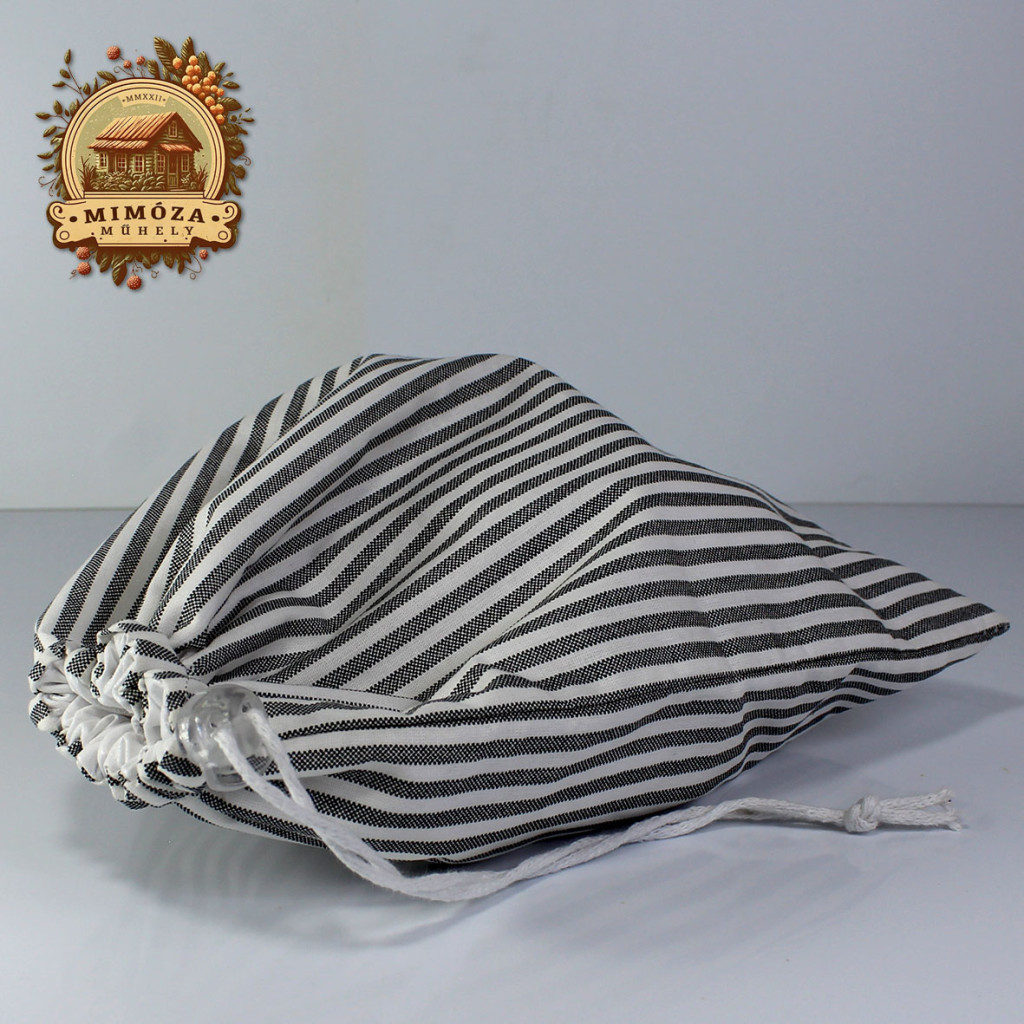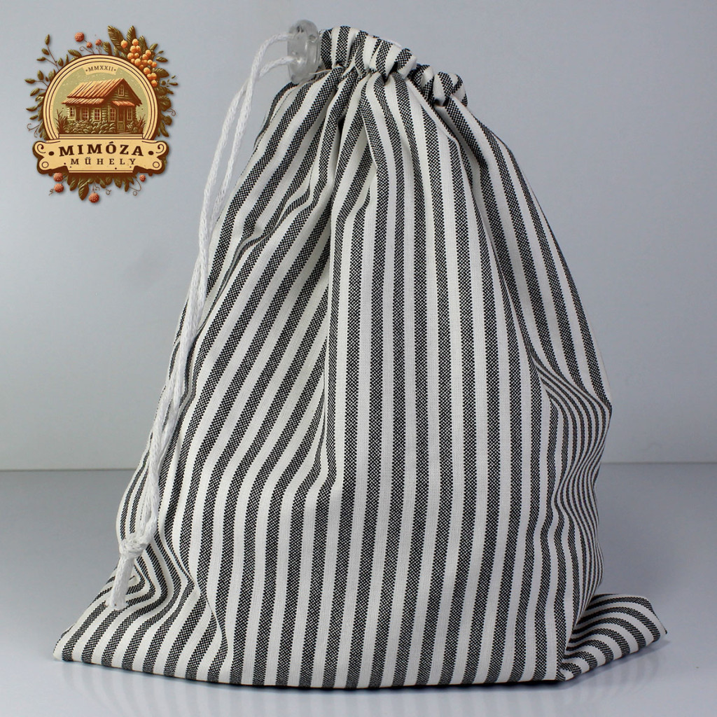 A Mimóza Műhely új kedvence, a szürke csíkos péksütis zsák tökéletes választás, ha szeretnél búcsút mondani az eldobható zacskóknak, és keresel egy praktikus, környezetbarát megoldást a zsemlék, kiflik tárolására – akár otthon, akár útközben!