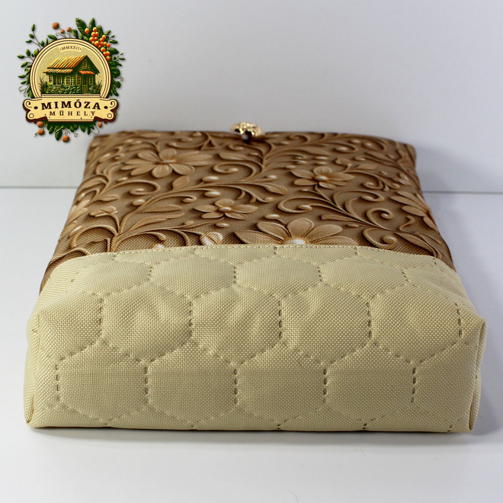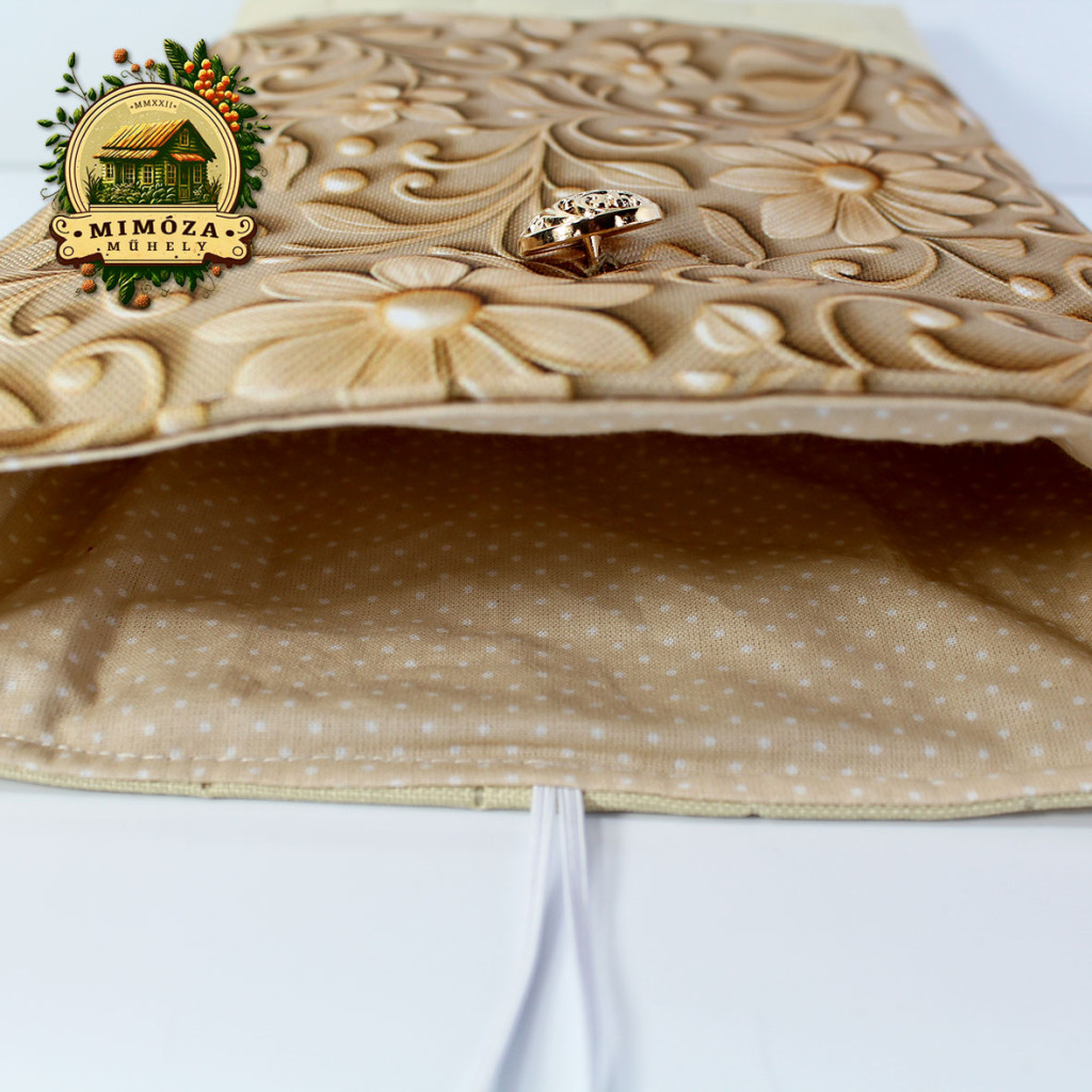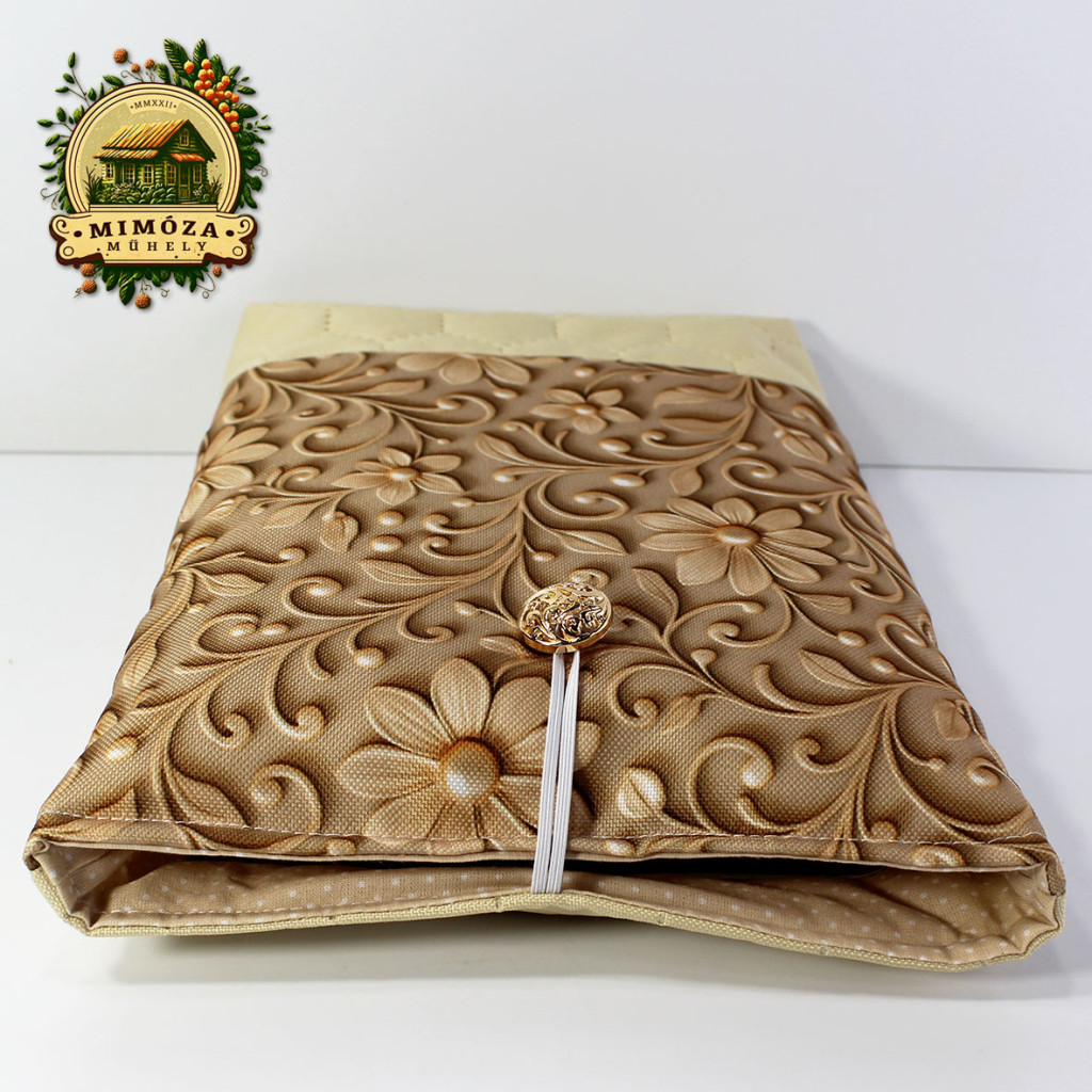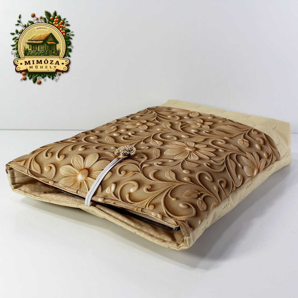 Könyv- és tablettartó tok – bézs színben, 3D-s virág mintával
