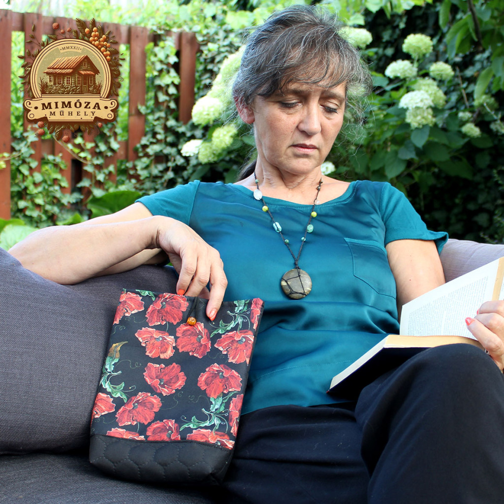 Legyen szó egy vastag könyvről, naplódról, tablet készülékedről vagy akár olvasód védelméről – ez a fekete alapon pipacsos mintás tartó úgy óvja meg őket, ahogyan egy kedves emlék lapul a táskádban: finoman, biztonságosan, és stílusosan.