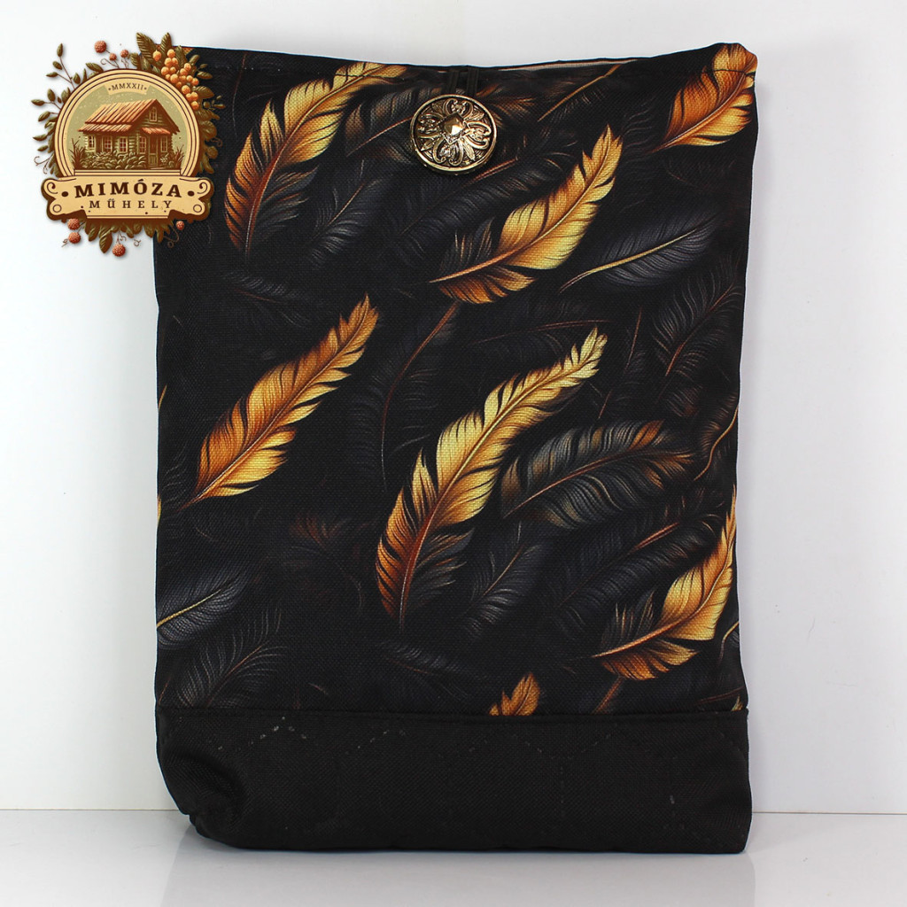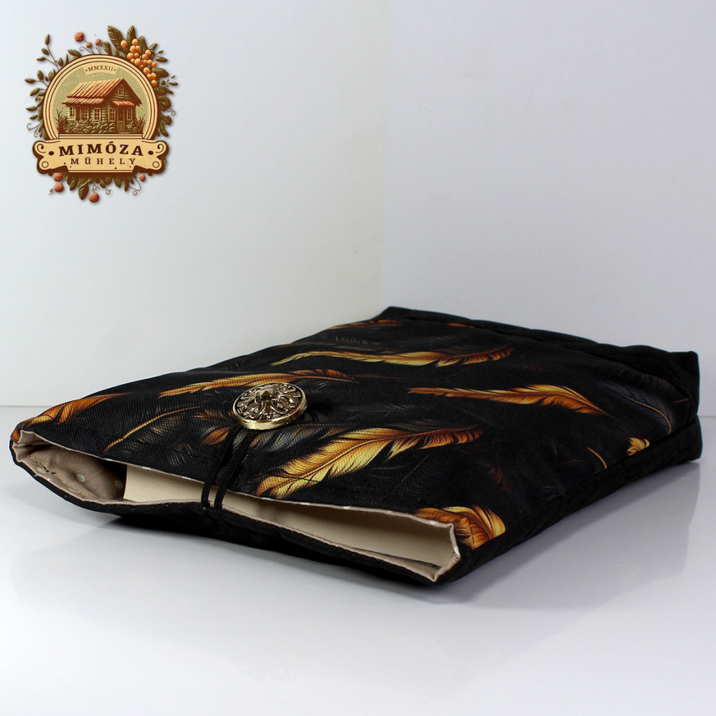 Ez a fekete alapon arany tollmintás könyv- és tablettartó tökéletes választás, ha szeretnéd stílusosan és biztonságban tudni kedvenc könyvedet vagy tabletedet – akár otthon, akár útközben.