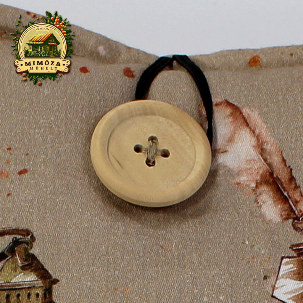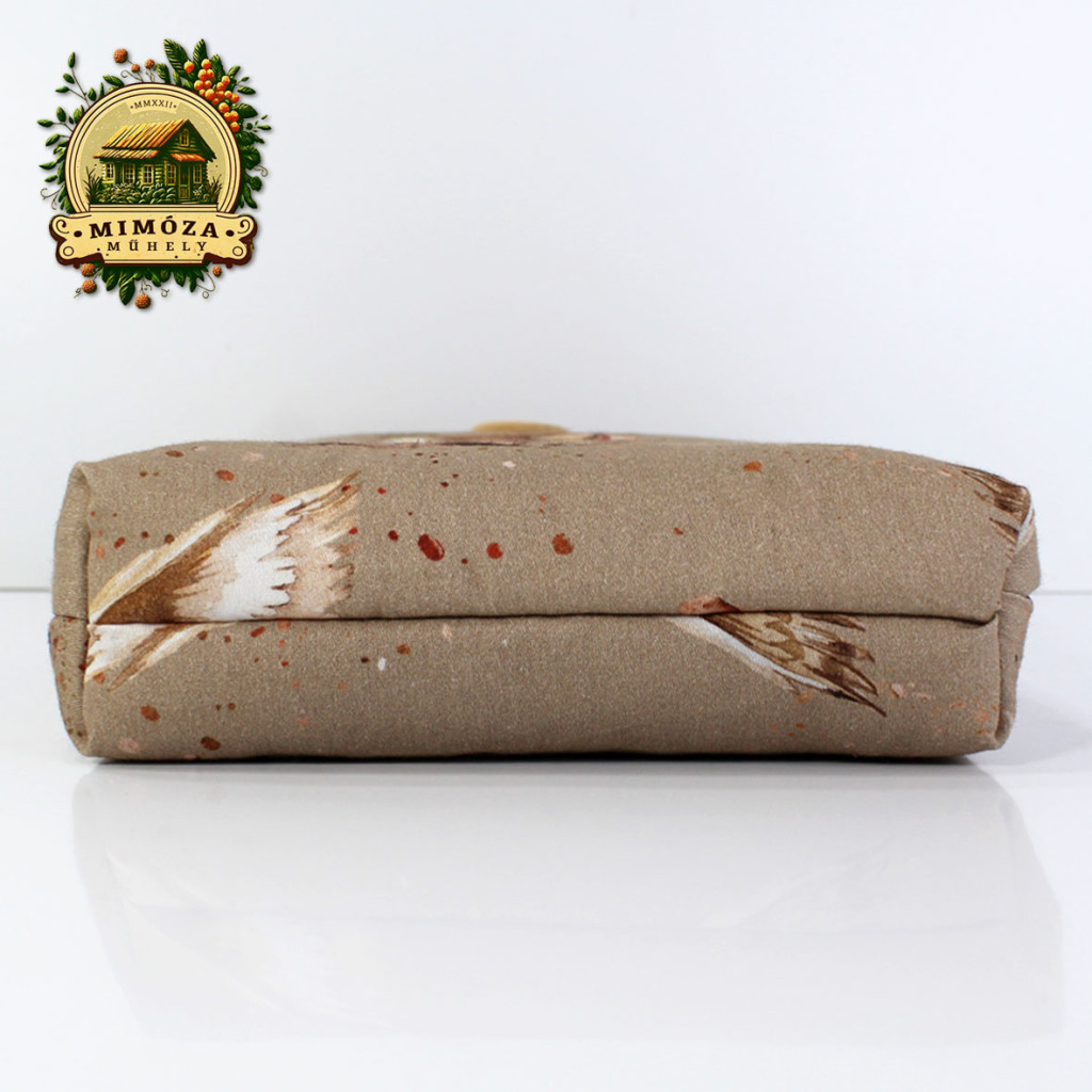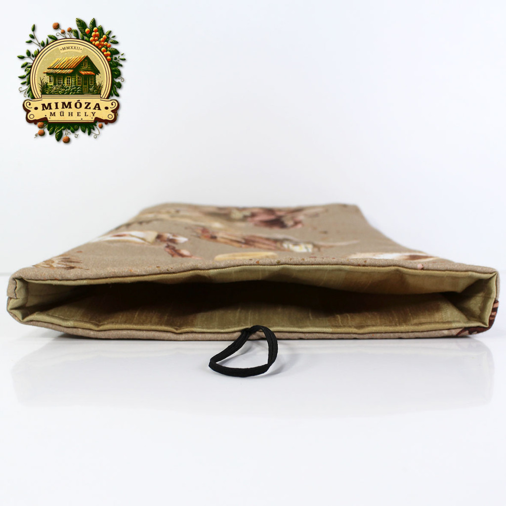 A külső rész pamutvászon, a belső aranyszínű bélés pedig diszkréten elegáns. Amikor kinyitod, egy pillanatra olyan érzés, mintha egy régi varázslókönyvet tárnál fel.