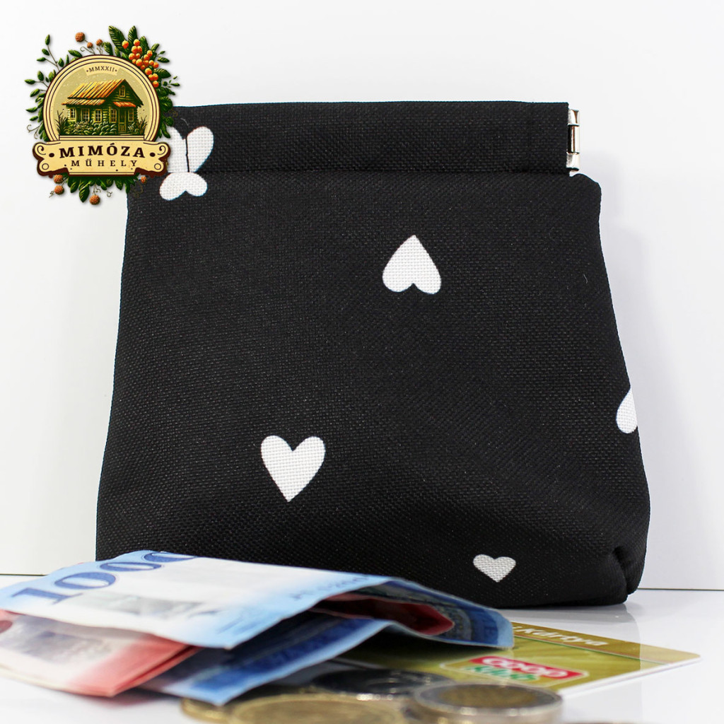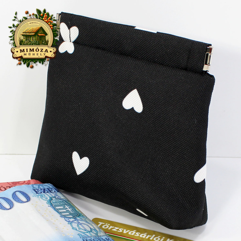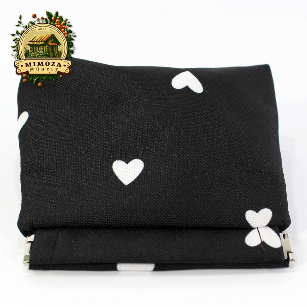 Ez a fekete, fehér szívecskés pikpak záras pénztárca nemcsak praktikus, hanem stílusos kiegészítő is – olyan darab, ami diszkréten mégis határozottan kiemel a tömegből.