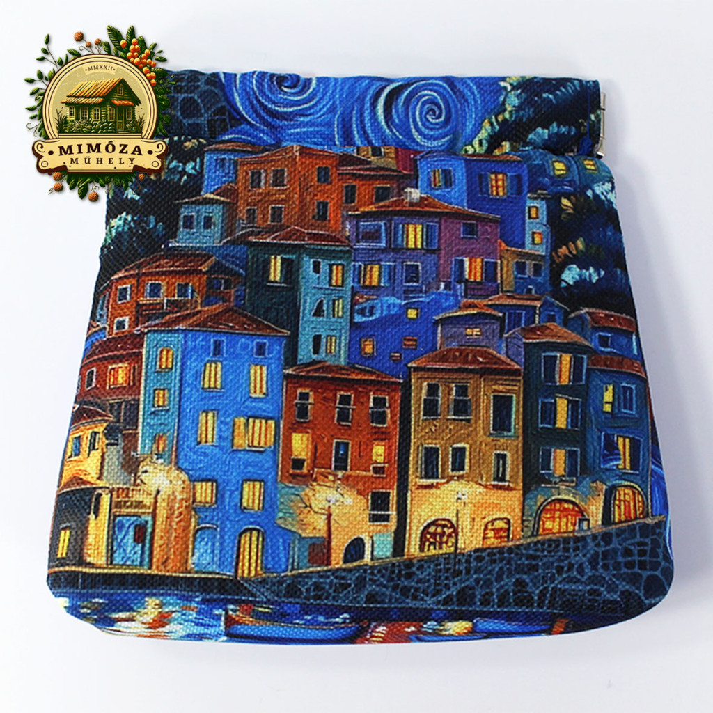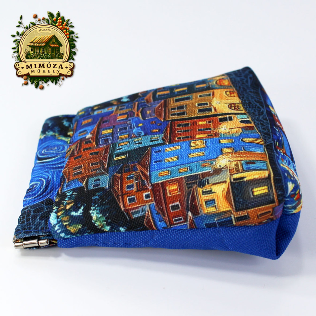 Pikpak záras pénztárca, van Gogh ihlette mintával, királykék színben