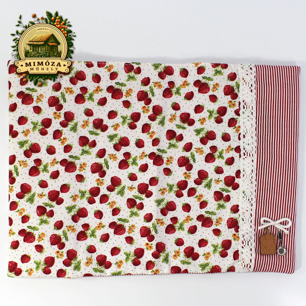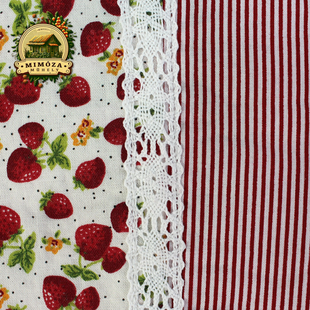 Külső rész: pamutvászon | Belső rész: piros-fehér csíkos pamutvászon | Középső réteg: vatelin – puha tartás és védelem
