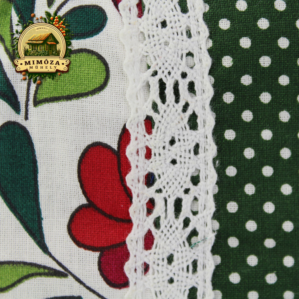 A külső rész pamutvászon, klasszikus matyó mintával. Nőies, karakteres, mégis otthonos.