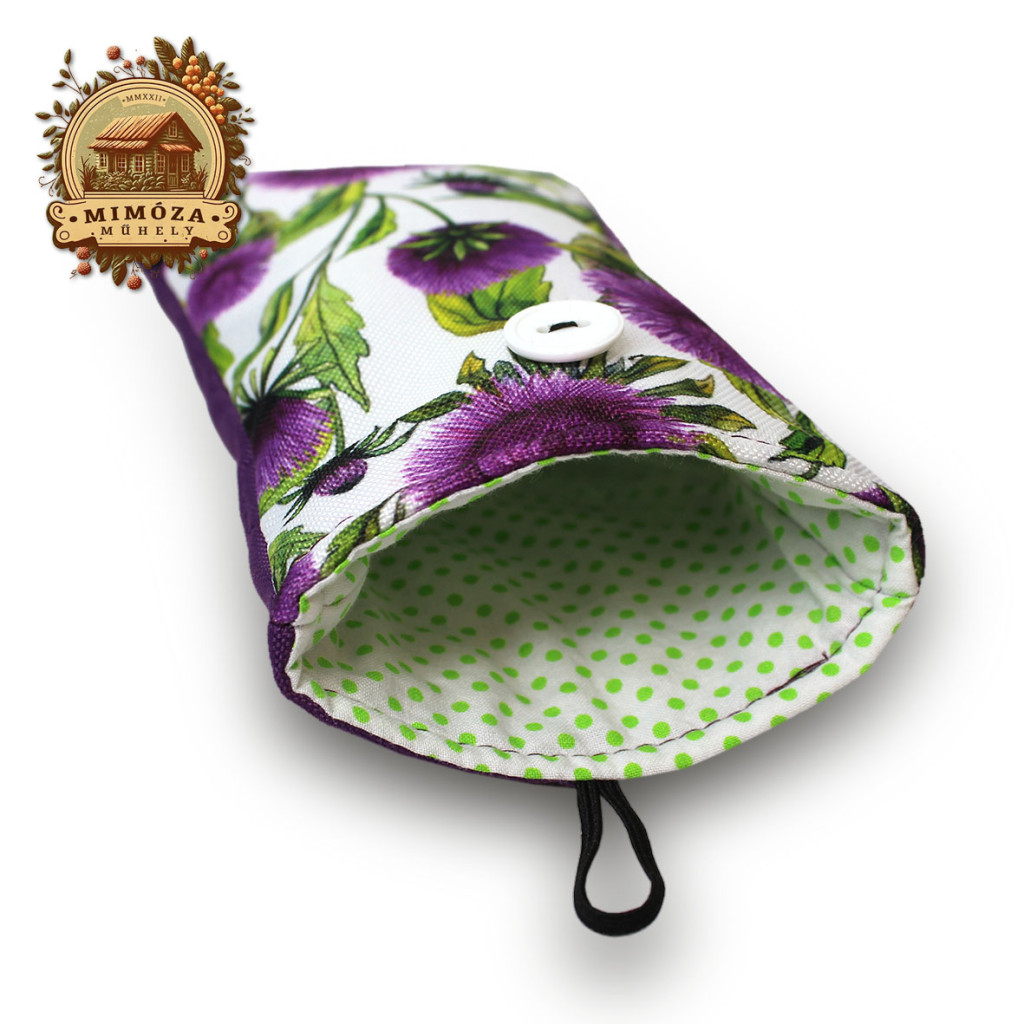 Ez a vidám és praktikus kézműves tok tökéletes választás azoknak, akik szeretik a szépet – és közben a szemüvegüket vagy telefonjukat is biztonságban tudnák. A lila virágmintás vízálló gyöngyvászon külső színes és friss hangulatot áraszt, a vatelinnel bélelt belső pamutvászon réteg pedig puhán óvja az eszközöket a karcolásoktól.