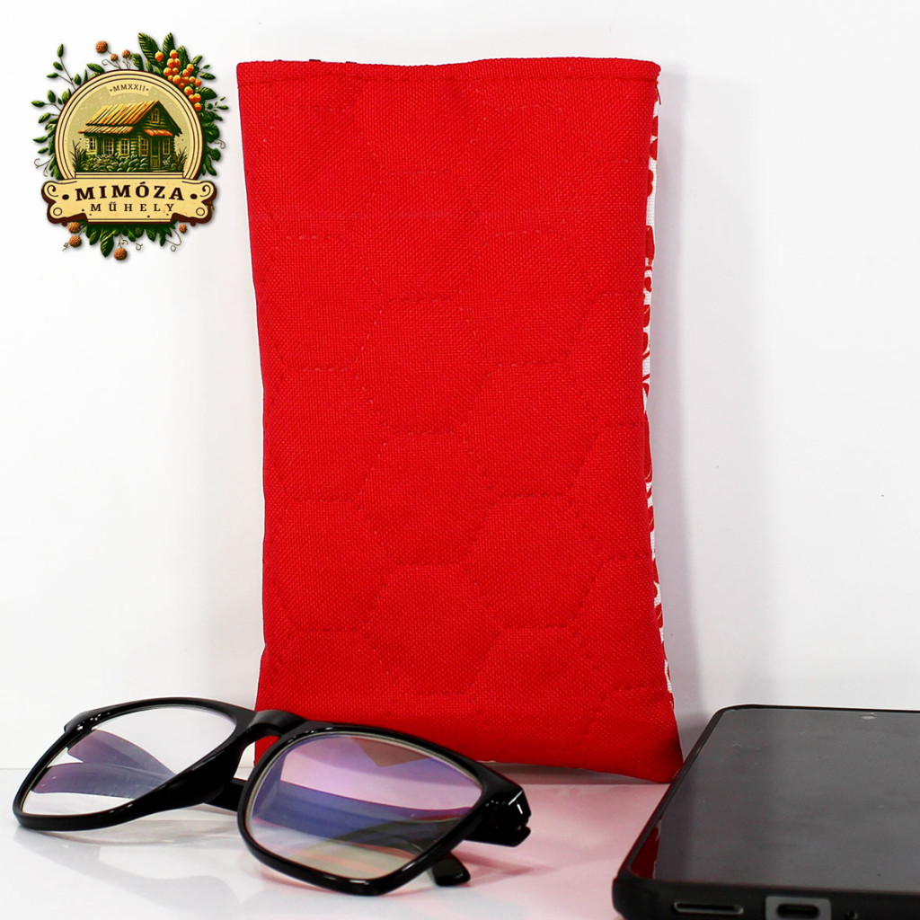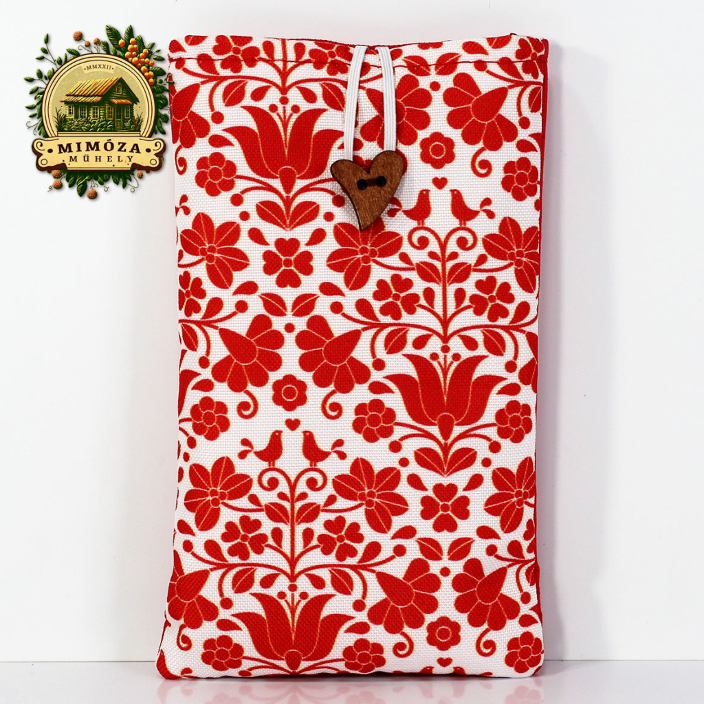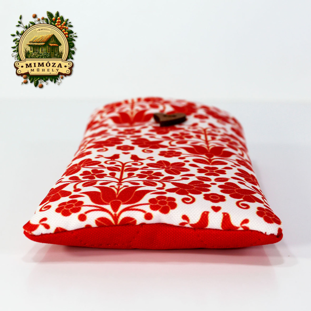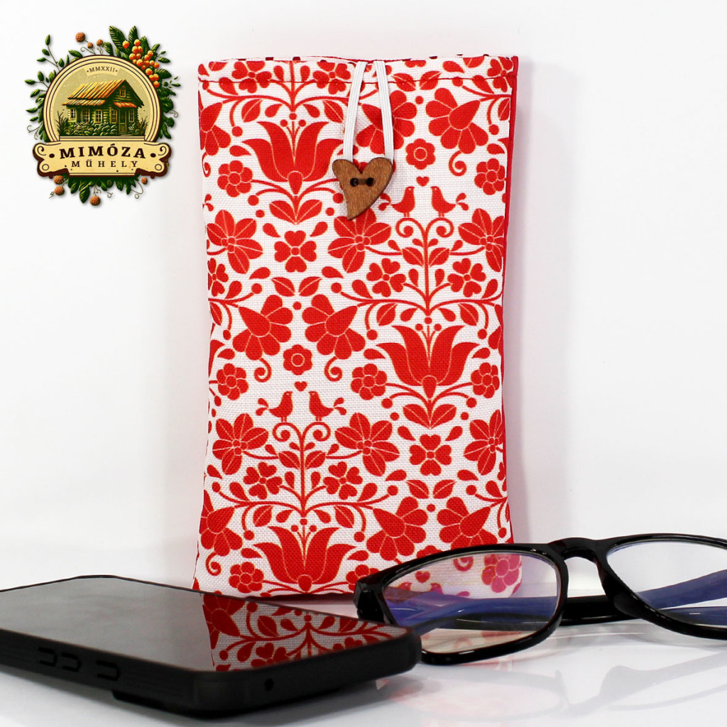 Képzeld el, ahogy reggel sietve elindulsz otthonról, mégis minden mozdulatodban ott van a harmónia és a stílus. A piros népies motívum mintás Mimóza szemüveg- és telefontok finoman csillan a táskádban – nem csak praktikus, hanem igazán egyedi kiegészítő is.