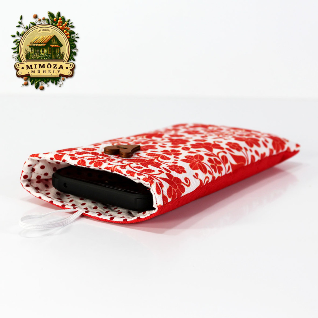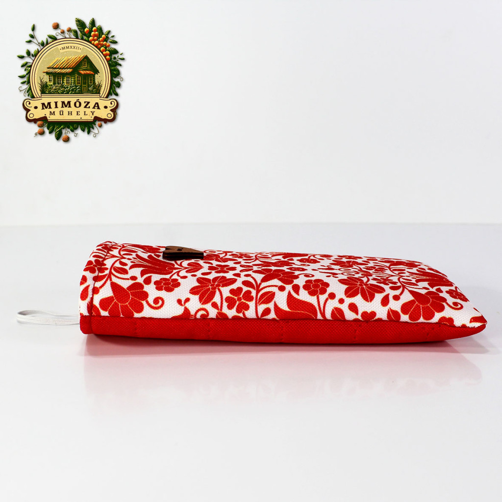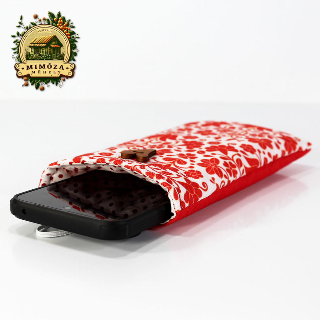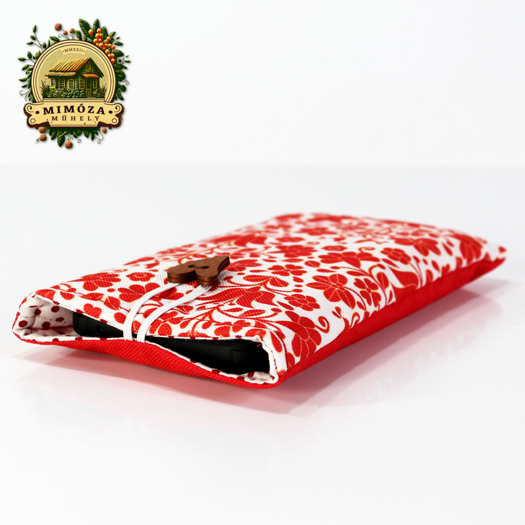 Képzeld el, ahogy reggel sietve elindulsz otthonról, mégis minden mozdulatodban ott van a harmónia és a stílus. A piros népies motívum mintás Mimóza szemüveg- és telefontok finoman csillan a táskádban – nem csak praktikus, hanem igazán egyedi kiegészítő is.