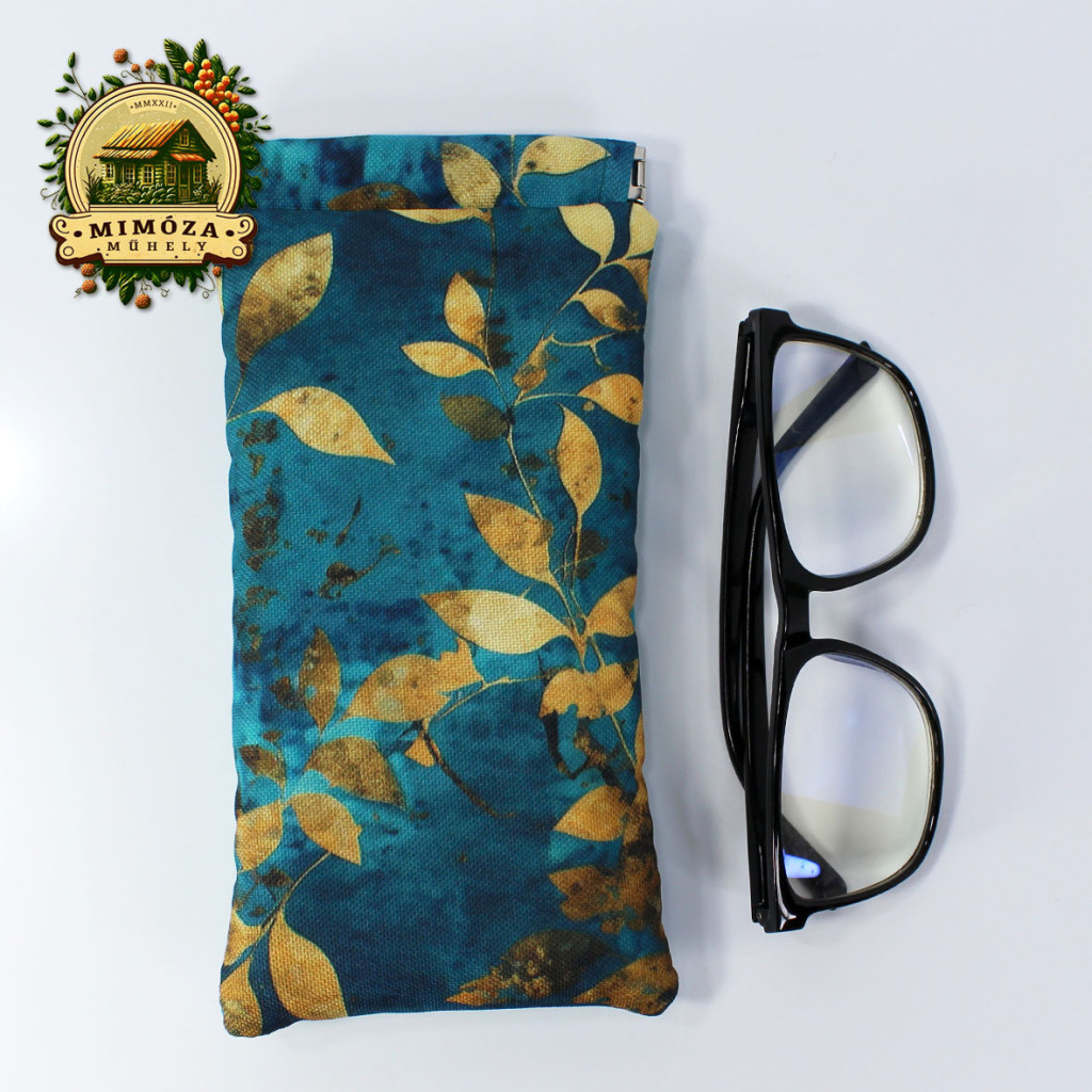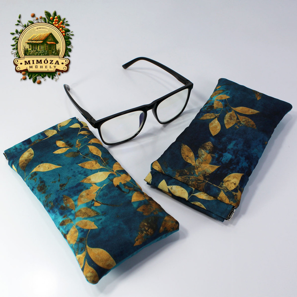 Egy sötét türkiz szemüvegtartót arany levelekkel, ami pont olyan különleges, mint Te. Finoman megnyomod két oldalt… pik-pak – és már nyílik is. Egy mozdulat, ami egyszerre praktikus és kicsit varázslatos.