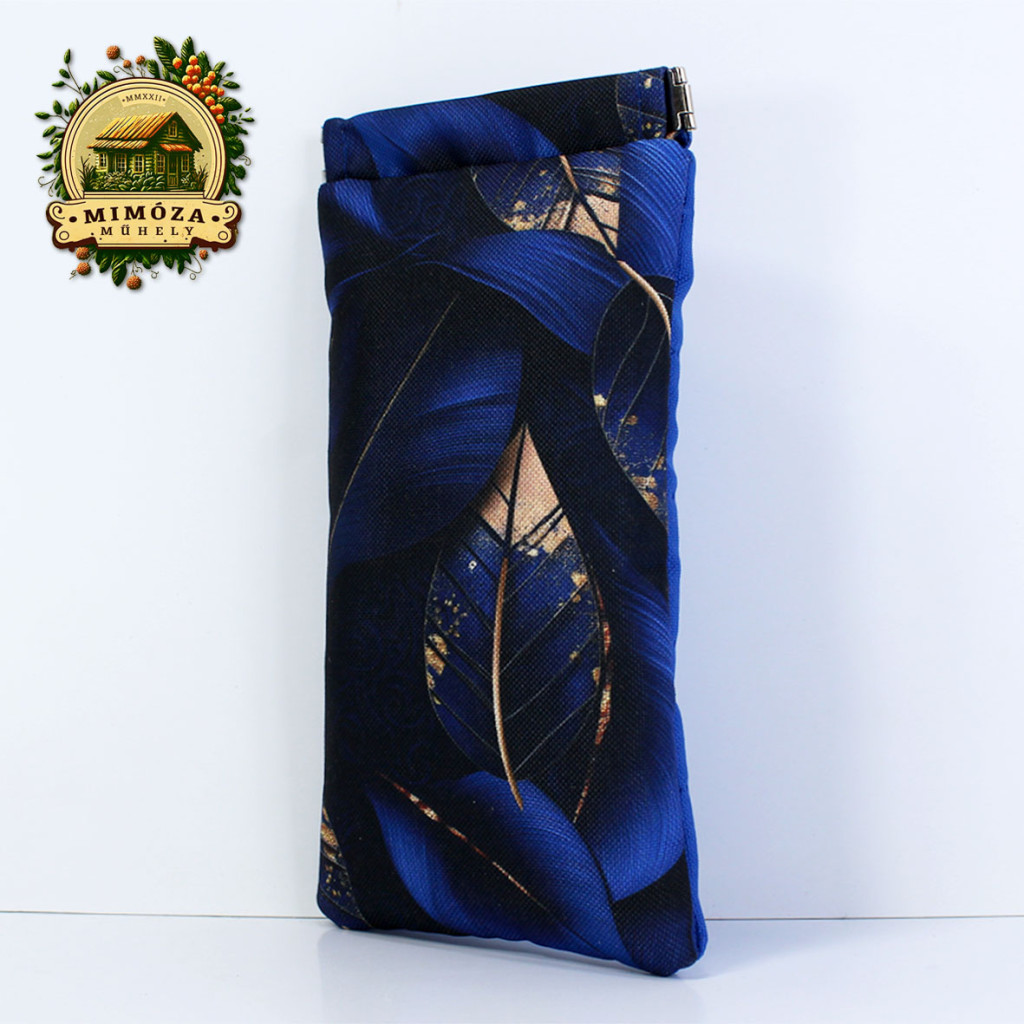 Ez a királykék, aranyleveles mintájú szemüvegtartó nem csak praktikus – hanem egy apró stílusnyilatkozat.