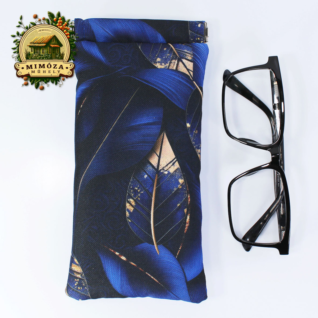 A mély, elegáns kék árnyalat és az aranyló levélminta együtt olyan hatást kelt, mintha egy különleges kiegészítőt viselnél – még akkor is, amikor „csak” a szemüvegedet veszed elő.