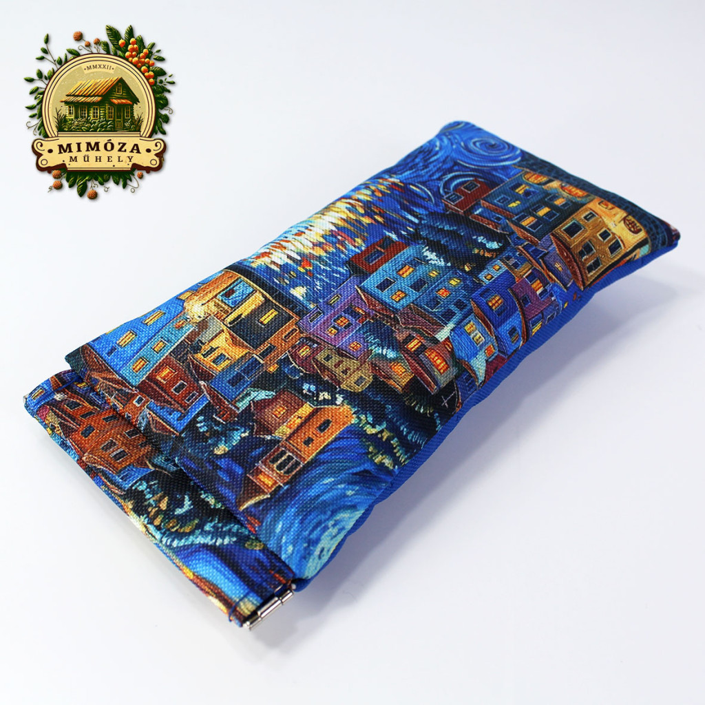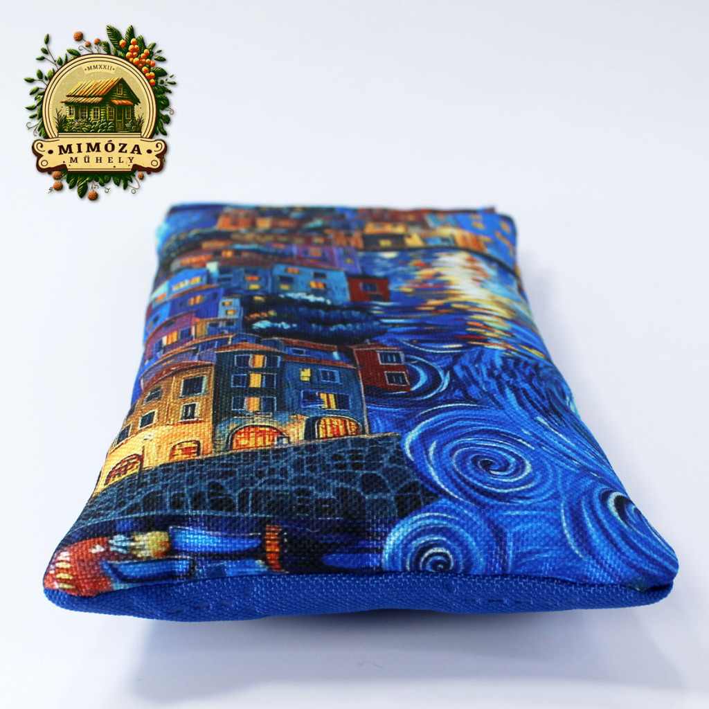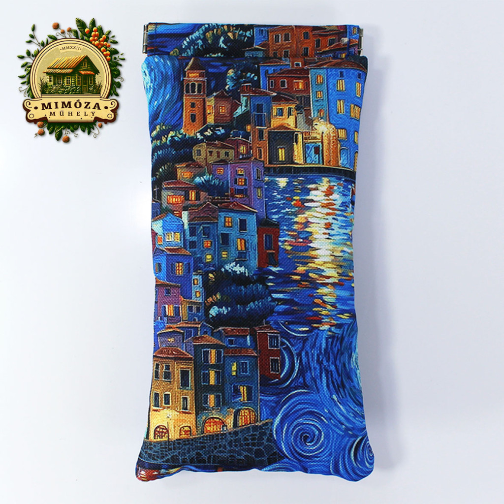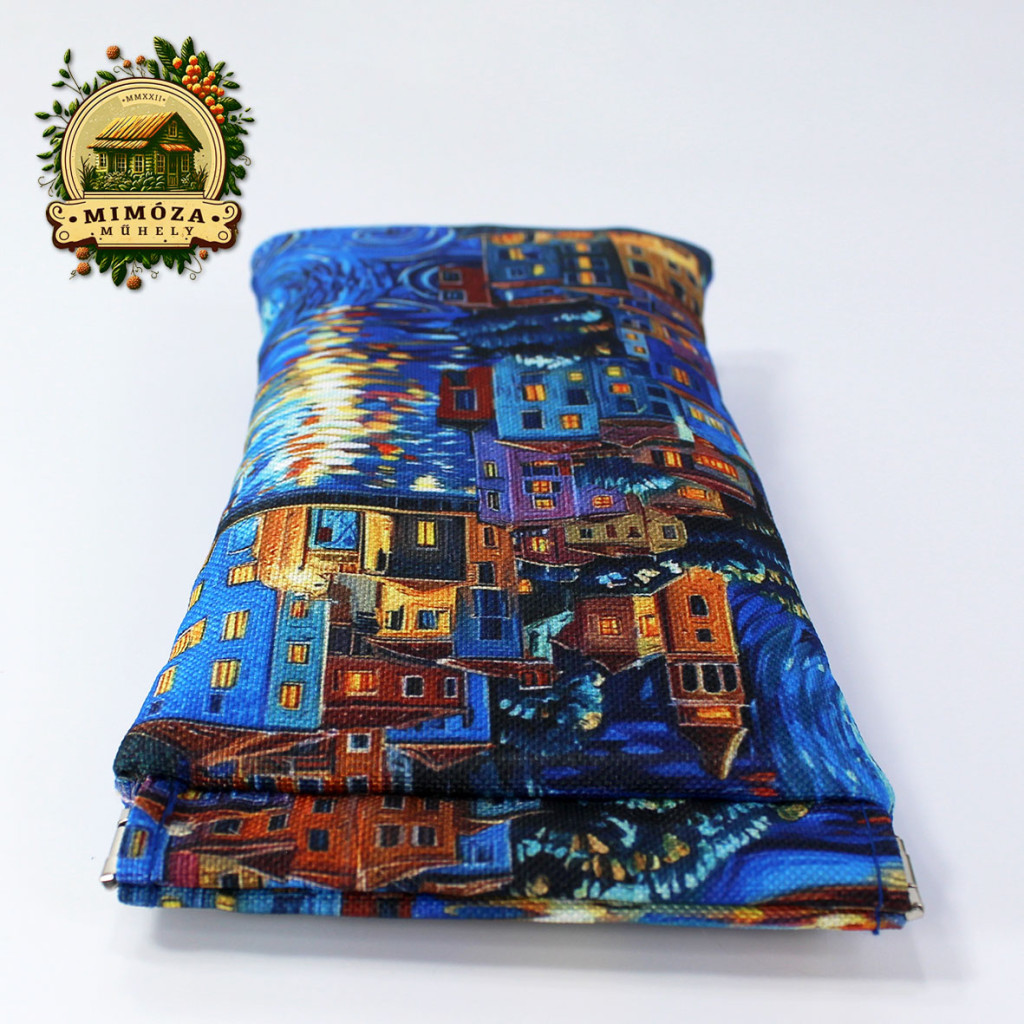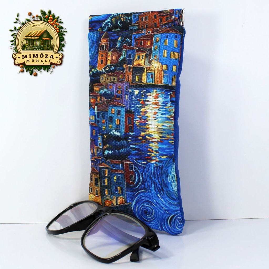 Szemüvegtartó van Gogh ihlette mintával, királykék – pikpak záras kézműves tok