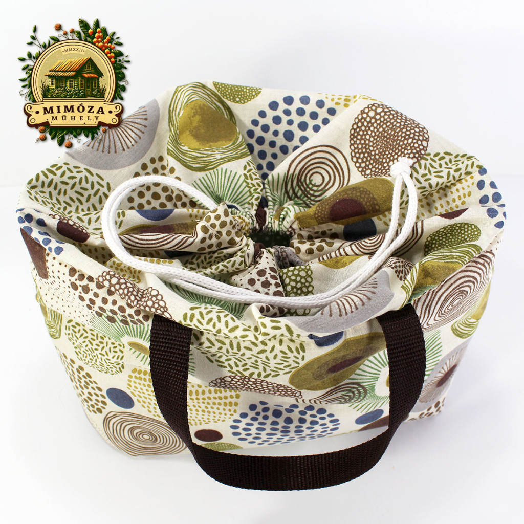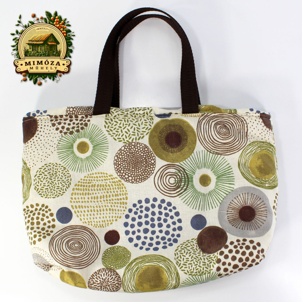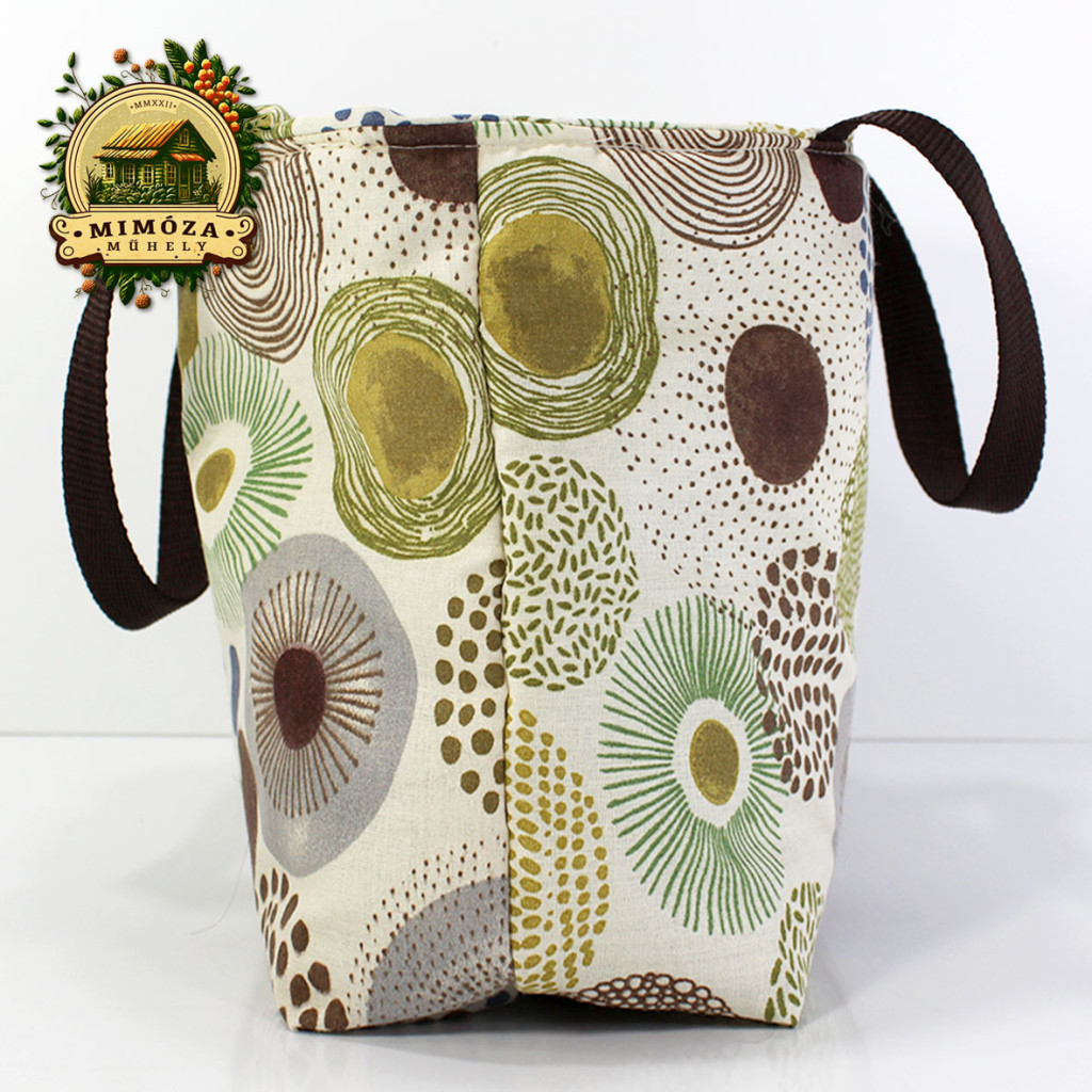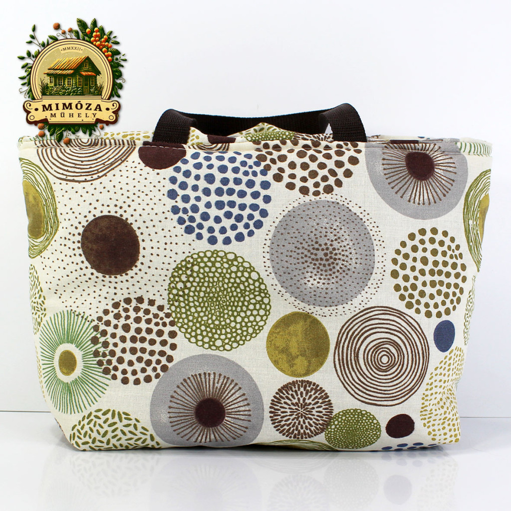 Uzsonnás táska geometria mintával, halványzöld pöttyös béléssel
