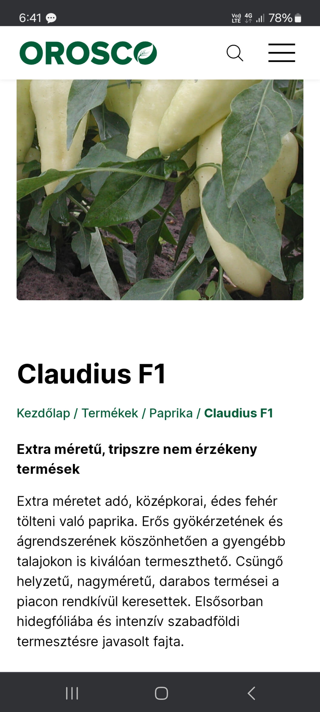 CLAUDIUS F1 étkezési paprika szálas palánta. Termés átlag súlya: 170-180g. Extra méretű, középkorai , édes fehér hegyes végű paprika. Csüngő nagyméretű, darabos termések, tölteni való paprika,
