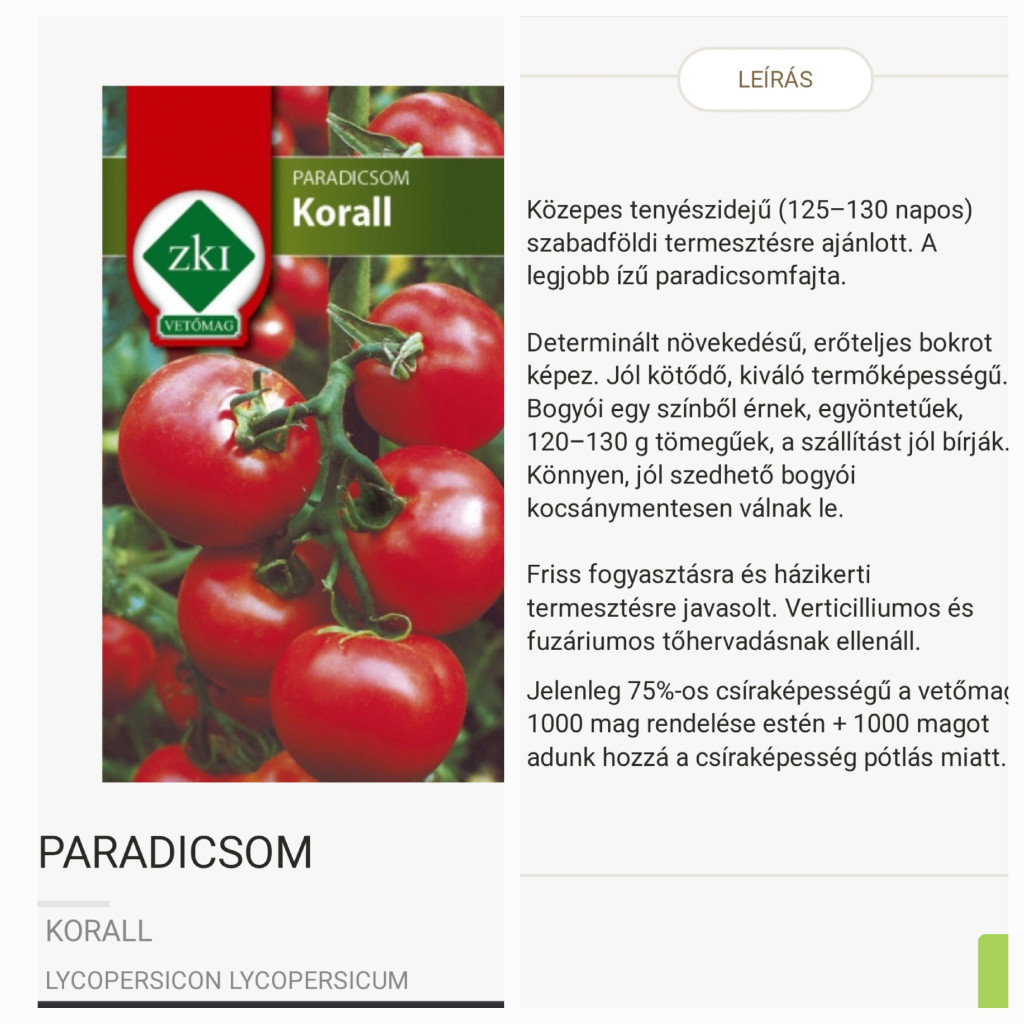 KORALL F1 paradicsom poharas palánta. Termés átlagsúlya: 120-130 g. Determinált növekedésű. Az egyik legjobb ízű paradicsom fajta. Bogyói egyöntetüek darabosak. Friss fogyasztás, konzerválás, paradicsomlé, lecsó.